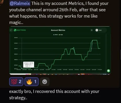 - Effective Risk Management: Whether you’re preparing for challenges, improving your discipline, or optimizing your daily trading, my risk plan ensures you stay on track while protecting your capital.